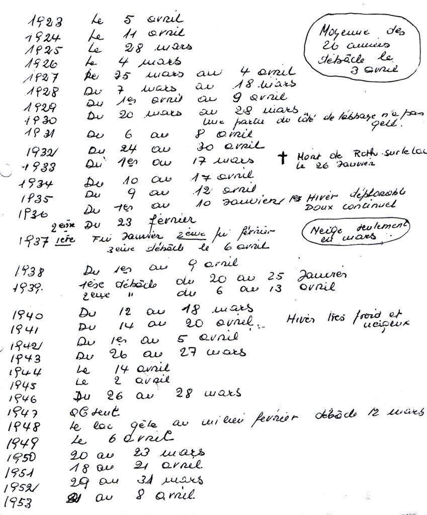 L’aventure de la navigation sur une étendue d’eau située à plus de 1000 m, avec les glaces de l’hiver, devait requérir les bonnes volontés de tous les intervenants, et notamment des villages en ce qui concerne les débarcadères. Celui de l’Abbaye n’échappa pas à la règle :