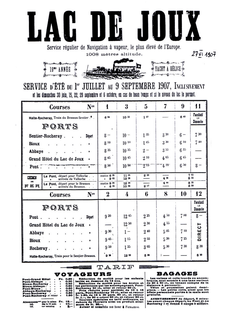 [7] O. Dedie, Histoire de la navigation sur le Lac de Joux, 1976, pp. 8 et 9. Texte de Charles-Edouard Rochat.
