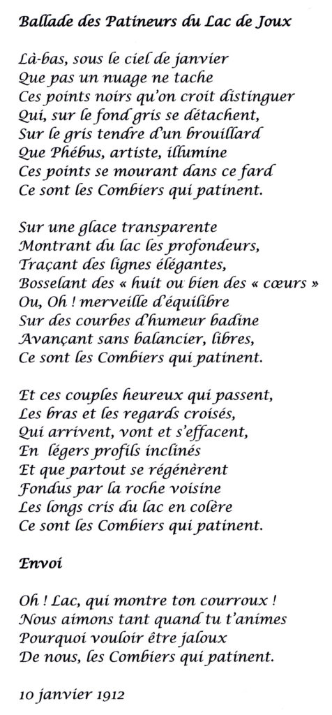 Les amateurs de patins étaient si mordus en ce temps-là, qu’ils fondèrent un Club des Patineurs en 1886. Celui-ci avait pour tâche de préparer des pistes pour les patineurs en même temps que d’assurer leur sécurité en balisant le lac. Pour différentes raisons, il ne devait pas durer. Il fut remplacé en 1898 par la Société de sauvetage du lac de Joux. Les activités de cette nouvelle organisation devaient perdurer tout au long du siècle suivant.