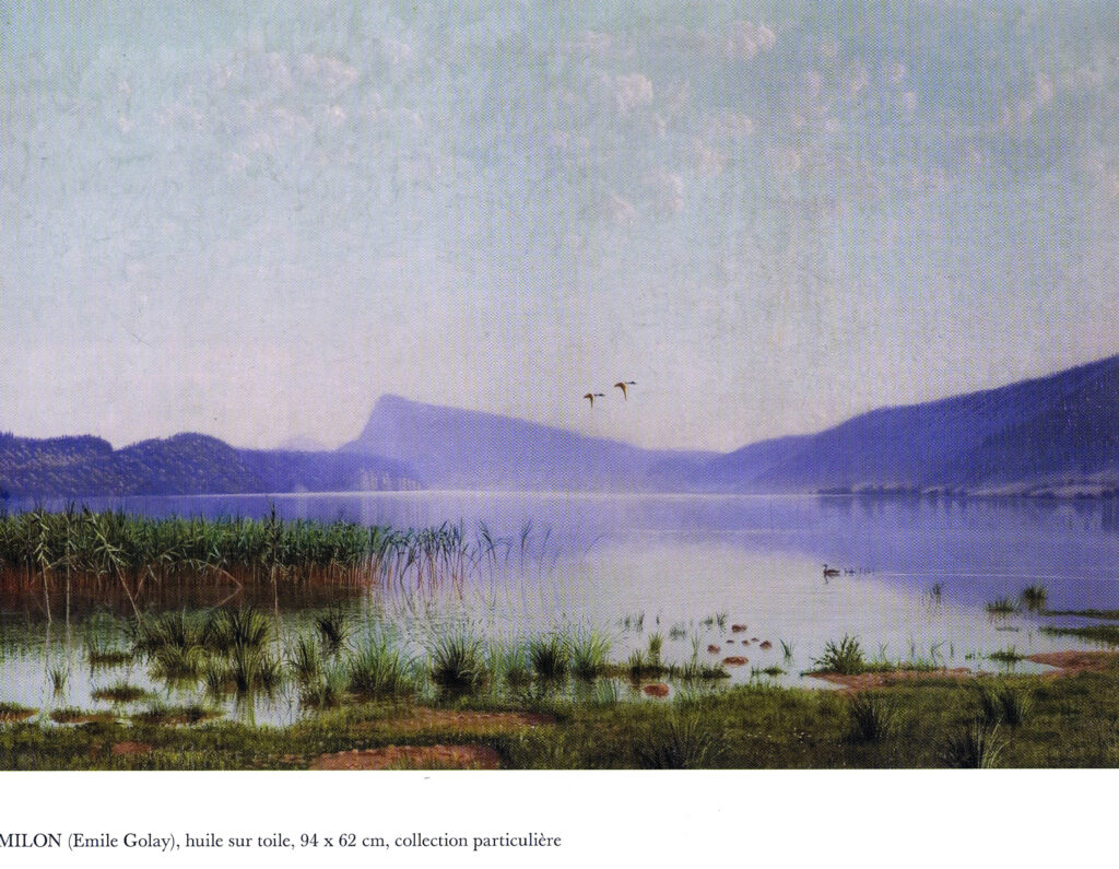 C’est aussi ce lac que traversait en des temps anciens, le pasteur de l’Abbaye qui avait en plus de sa paroisse la charge de celle du Lieu. Il faisait la course en barque à rames. Parti du village de l’Abbaye, il ramait ferme, lui ou son commis, pour rejoindre l’autre rive suivant une belle diagonale. Sur terre ferme, il grimpait la colline du Revers pour redescendre de l’autre côté où il retrouvait la grande église de la Rochettaz, alors située à la Combe. Le parcours terrestre n’était donc que de quelques minutes sur une sente qui fut nommée plus tard Le Chemin du Ministre. Ce toponyme, tout comme le chemin, existent encore.