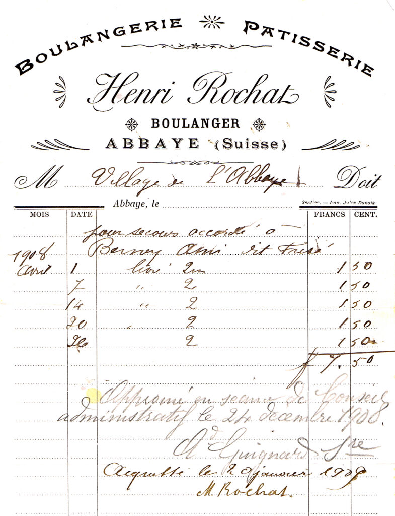 Les fourniers sont remplacés par des boulangers dès 1895. Alors Henri Rochat est le boulanger du village.