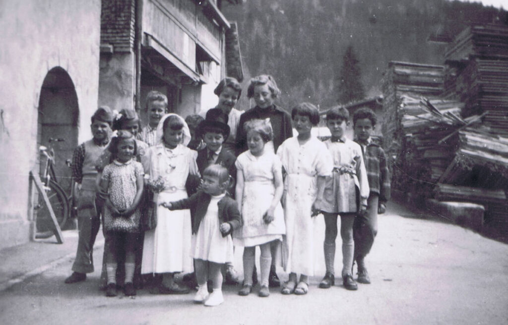 Voilà donc de quoi faire venir en foule les habitants du village. Mais ce n’est pas tout. Cette rue pouvait être fréquentée de manière régulière par les charrois de grands bois qui montaient aux scieries. Par les troupeaux que l’on conduisait aux alpages supérieurs. En fait par tout ce qui pouvait être charrié du bas en haut de ces fières et raides pentes boisées ou vice-versa. C’était l’encombrement. On se croisait à peine. Mais au moins le village vivait. Car c’était aussi en ce haut que l’on trouvait l’essentiel des fermes. Signalons au passage que ce quartier brûla en 1833 et que lors de la reconstruction l’on n’en revint pas à l’architecture traditionnelle avec le néveau devant la maison, mais que l’on préféra établir des façades pleines, avec de belles portes de grange ou d’écurie en pierre de taille et en voûte.