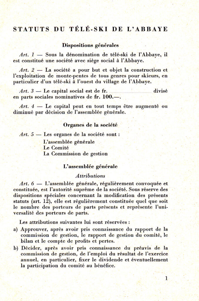 27 juin 1966. Assemblée constitutive du Grand téléski du Lac de Joux dont la buvette sera installée chez Siméon. Société toujours active.