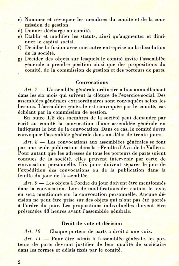 Elle sera l’une des plus anciennes organisations de ce type à la Vallée, commençant ses activités en 1811 de concert avec la fromagerie du Pont.