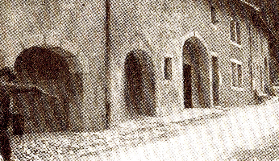 Rue du Haut à l’Abbaye. Granges et écuries aux portes cintrées. René Meylan, 1929.